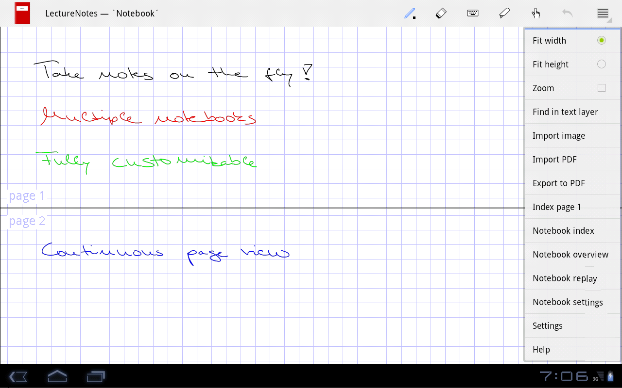 LectureNotes is an Android app for note-taking by handwriting on the screen, in particular with a stylus.